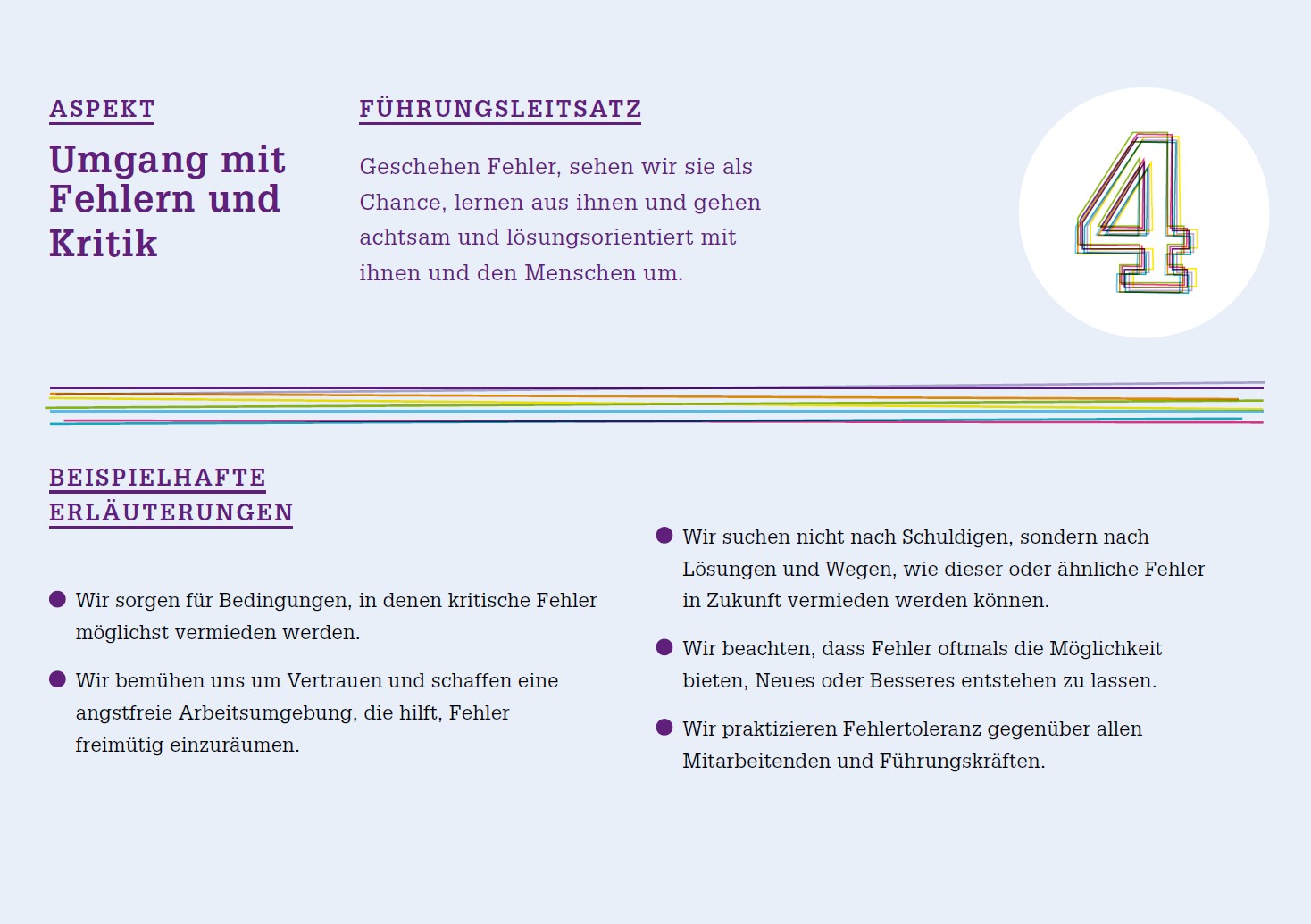 Unsere Führungsleitsätze gliedern sich in acht zentrale Aspekte mit ebenso vielen Führungsleitsätzen, die jeweils beispielhaft erläutert werden: